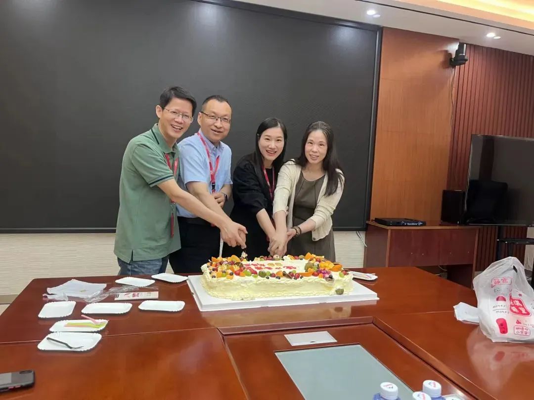 在胡成國的帶領(lǐng)下,各會場同時切開生日蛋糕,共同歡慶德力西生日快樂。